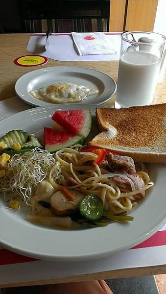 這次訂房是含早餐的。早餐是是自助式的,但如果要吃雞蛋和煙肉等食品便要跟服務生說(不另收費),至於味道啦,一般啦~沒什麼特別的地方。