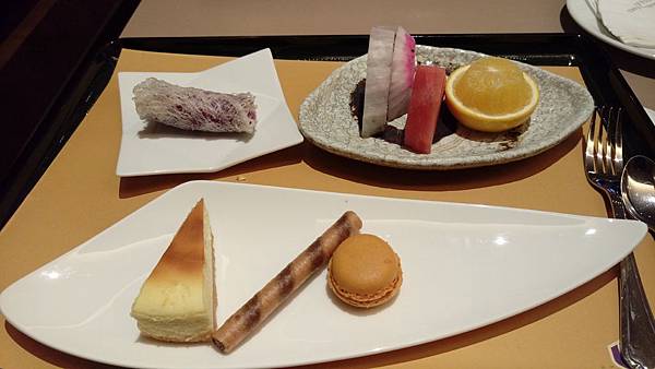 起士蛋糕真的很一般,配那個蛋捲是一大敗筆。那蛋捲是在超市買的那種,加下去令整個餐的感覺都降級了。山藥捲是不錯,只是有點油。中西甜品混在一起感覺有點怪。